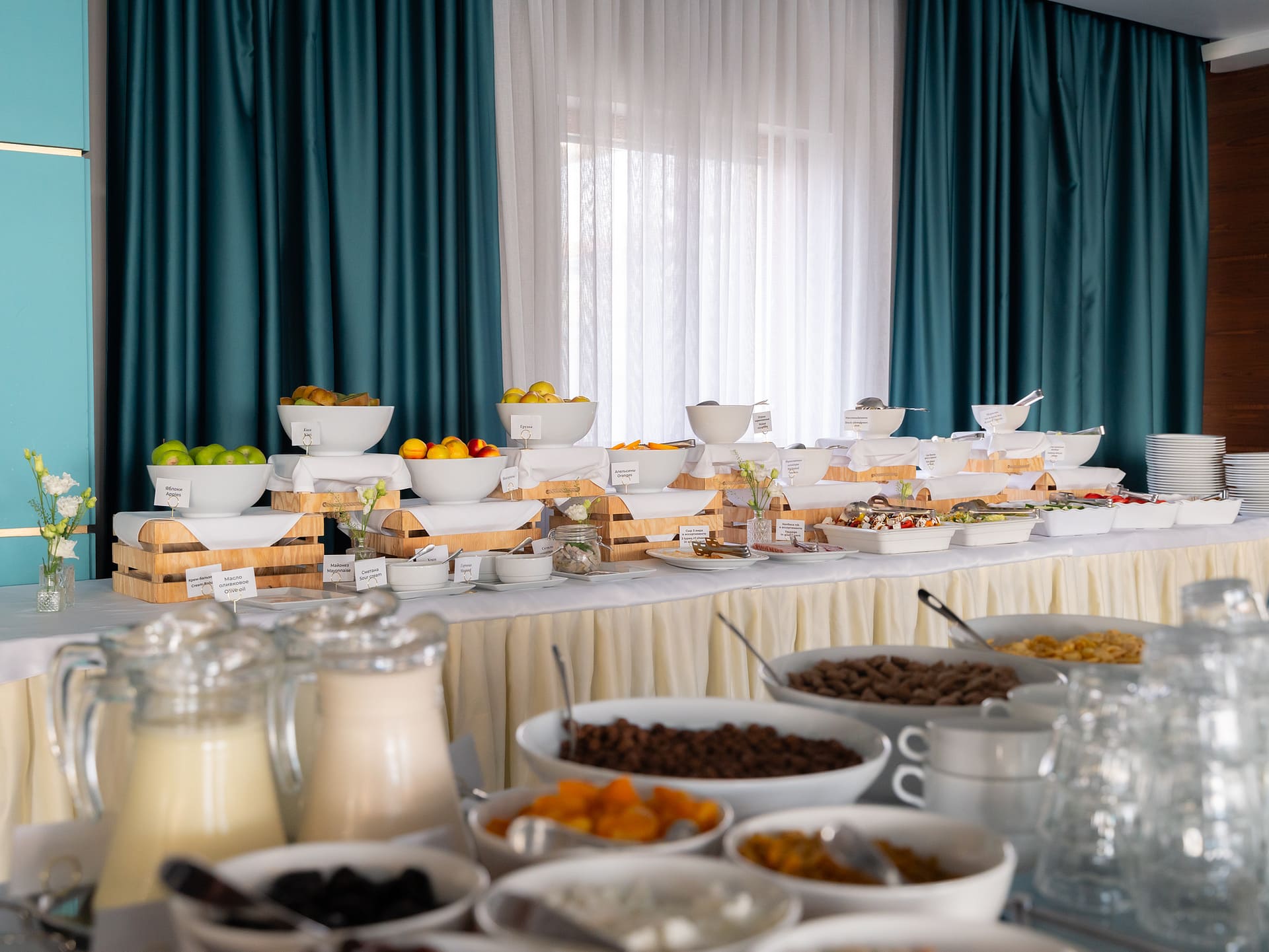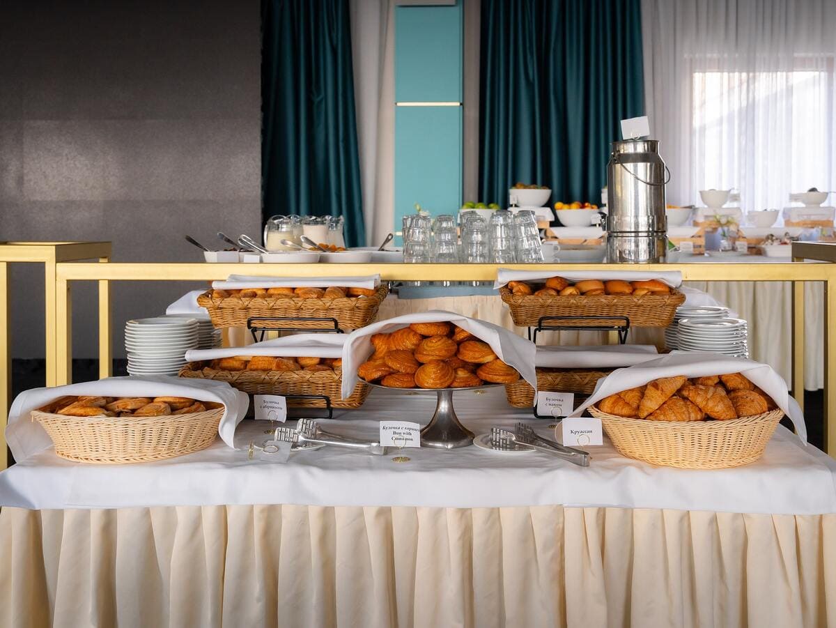 Мы верим, что правильное начало дня – залог хорошего настроения и продуктивности. Именно поэтому в нашем отеле мы уделяем особое внимание качеству и разнообразию завтраков. Начните свой день с вдохновения и энергии в ресторане нашего отеля! Каждое утро мы предлагаем нашим гостям вкусный и питательный завтрак, с большим количеством блюд, который удовлетворит даже самых взыскательных гурманов.