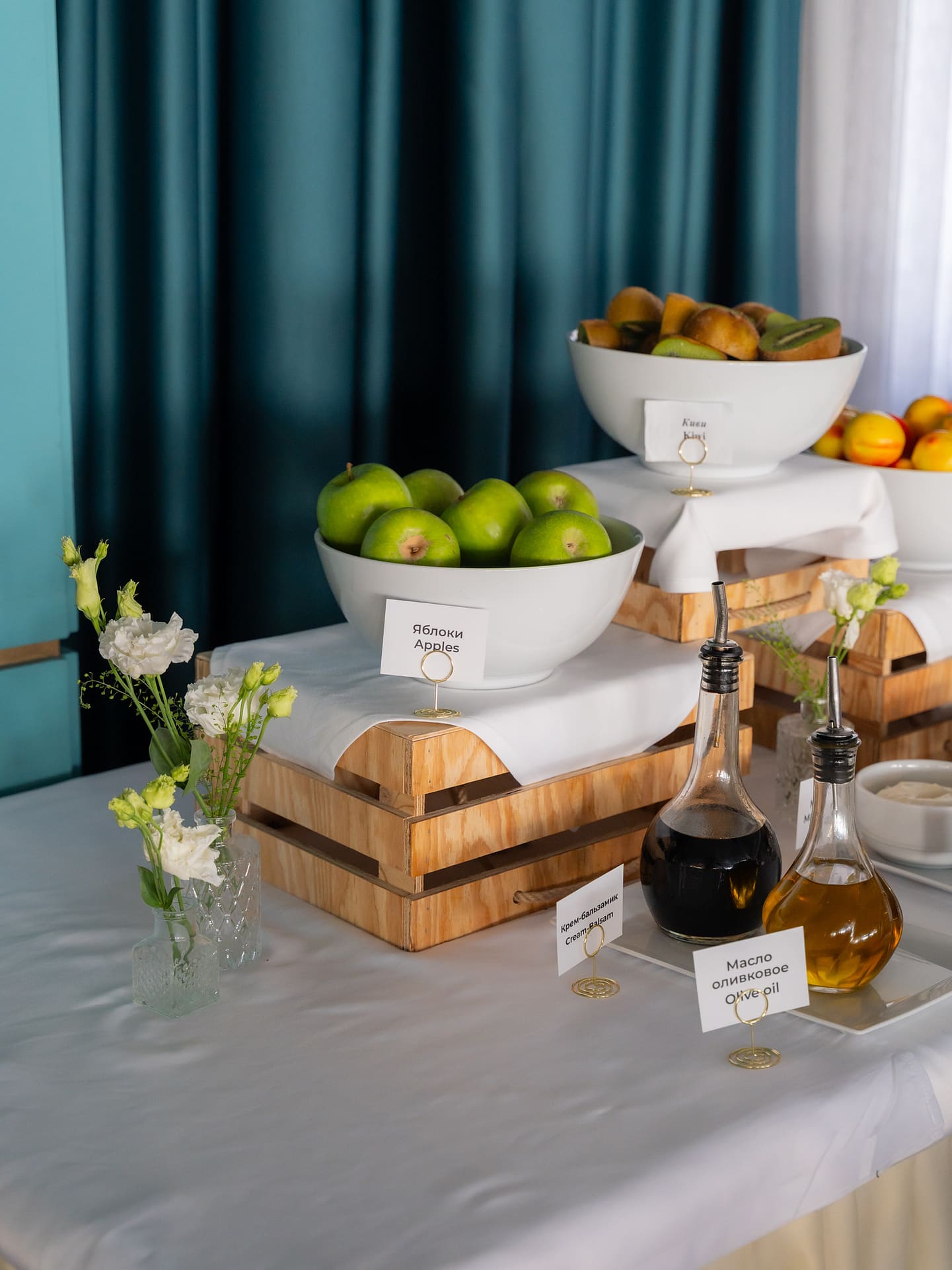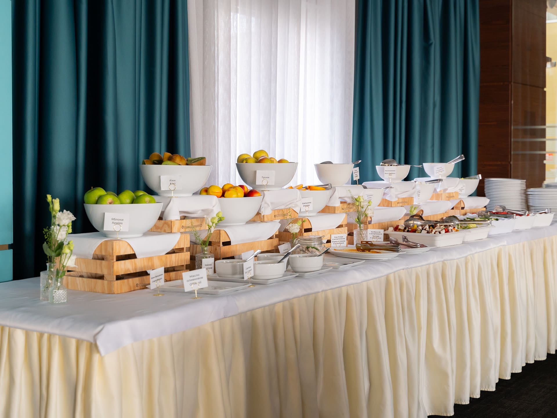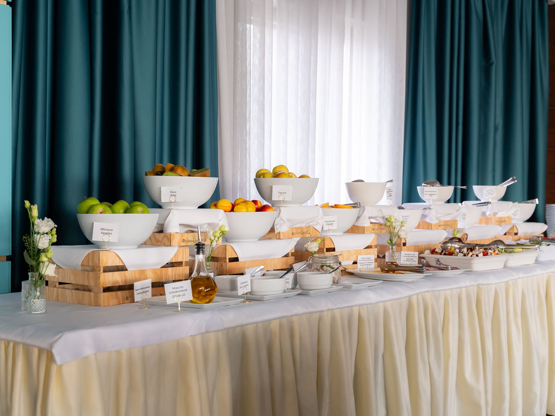Фруктовый бар с сезонными фруктами для тех , кто хочет взять с собой полезный перекус.