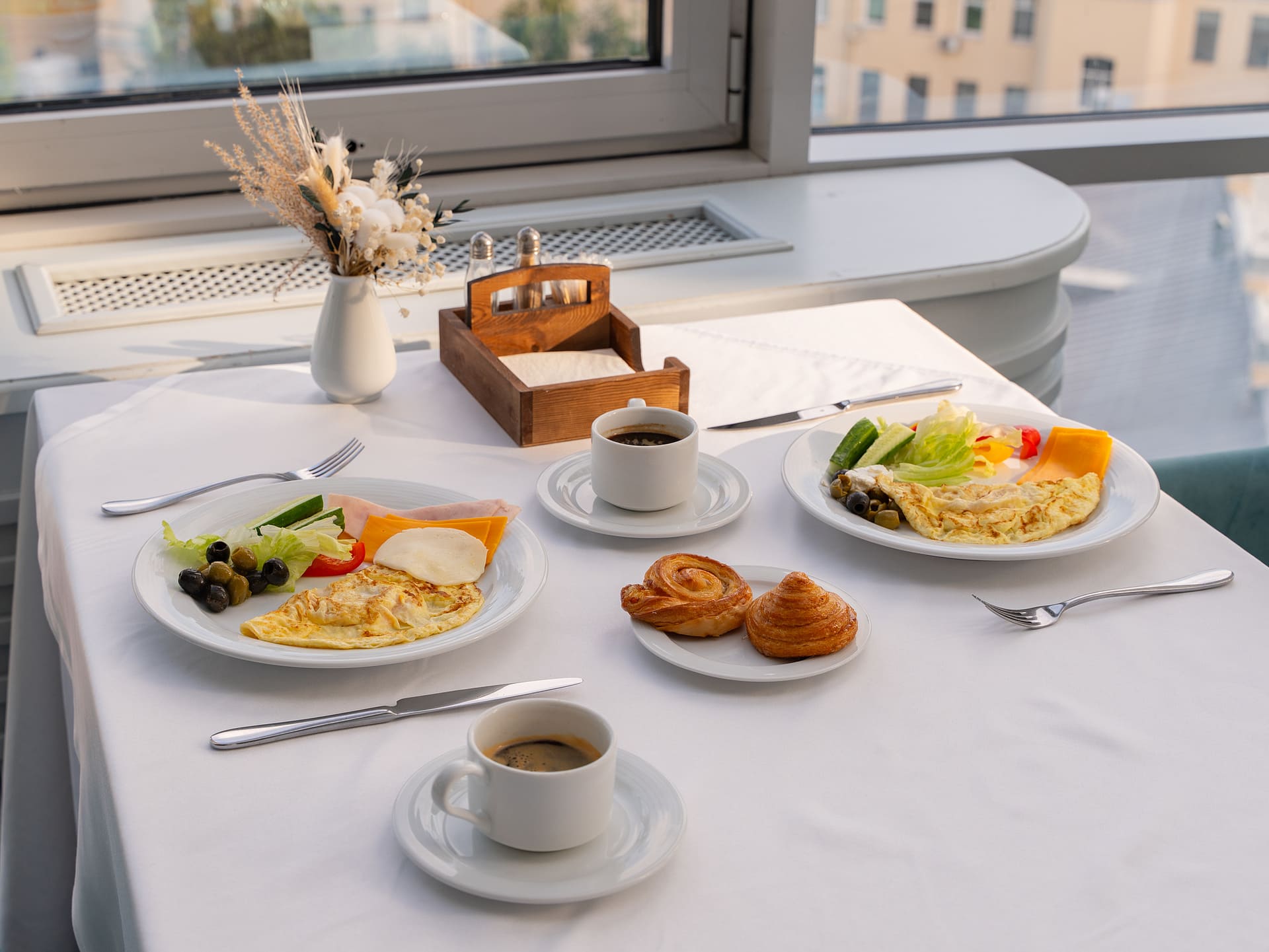 Завтрак сервируется ежедневно в ресторане "Панорамный" на 9 этаже отеля: с 7:30 до 10:30